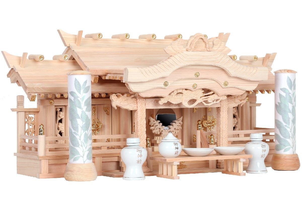 - 神棚 神棚セット モダン 特大 84cm 美彫り・昇龍大社 / 入母屋 神棚セット 榊灯ろう 明かりが灯る 神具セット