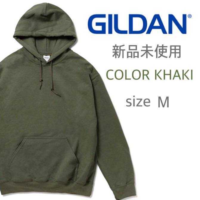 - 新品未使用 ギルダン 無地 裏起毛 プルオーバーパーカー ミリタリー グリーン M GILDAN 18500