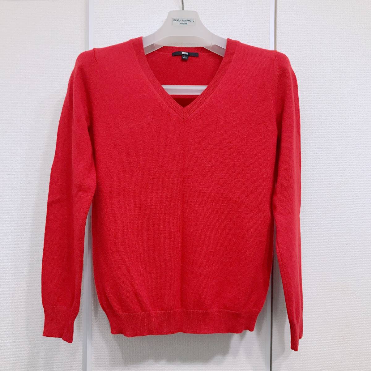 - 売切り特価【美品・送料一律380円】Sサイズ UNIQLO/ユニクロ カシミヤ100% Vネックセーター レッド/Uネック赤色