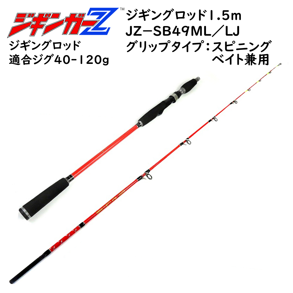 > ジギングロッド 1.5m 対応ジグ 40~120g 釣り竿 スピニング・ベイト兼用 スロージギング ジギンガーZ ソルトルアー竿 JZ-B49ML/LJ 釣り具