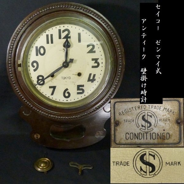 【 恵 #0344 】 アンティーク TRADE MARK セイコー ゼンマイ式 壁掛け時計 検:セイコウ/時計/ぜんまい拍卖