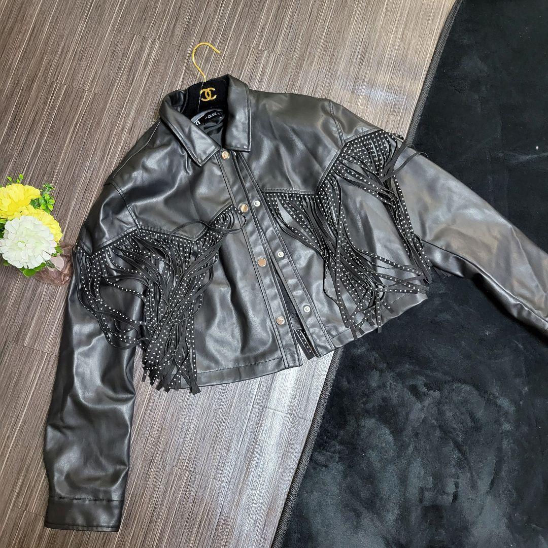 - ZARA かっこいい レザージャケット フリンジ スタッズ パーカー コート