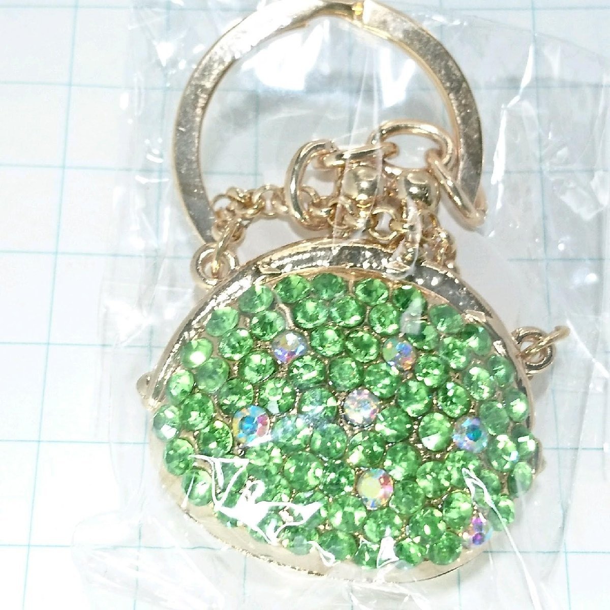 - 送料無料)未開封 キラキラがまぐちバッグ グリーン キーホルダ A13885