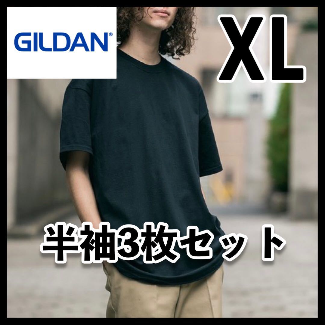 > 新品未使用 ギルダン 6oz ウルトラコットン 無地半袖Tシャツ ユニセックス 黒3枚 XL