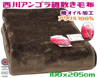- 西川 敷き毛布 シングル うるおい ブラウン ミンク調 アクリル 椿オイル 日本製 洗える