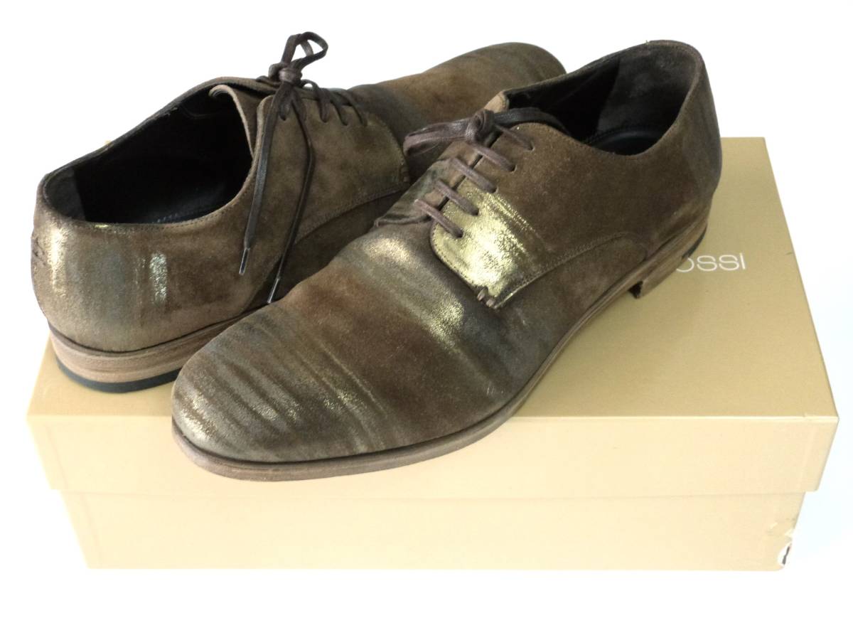 > 美品箱付セルジオロッシ定価88,000円金箔ペイント加工カーフスエードダービーシューズサイズEUR7h/26.5cm