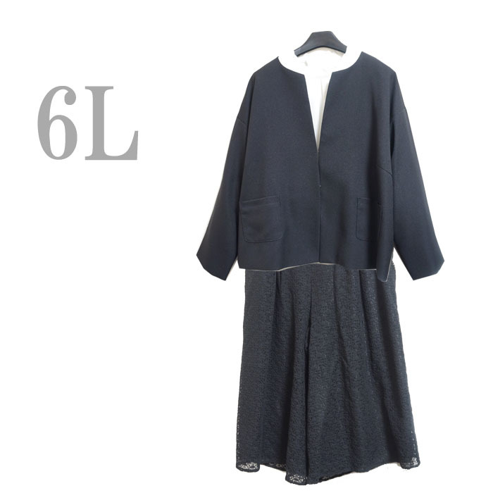 - ●新品/3点/ジャケット/ブラウス/パンツ/6L/黒系/白系/レディース●&0800