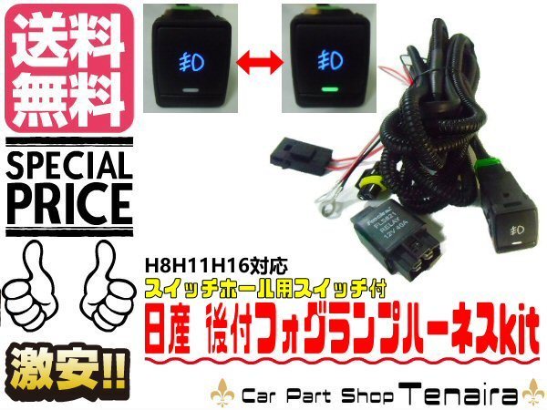 > ニッサン 日産 H8/H11/H16 対応 後付 フォグランプ 配線 リレー ハーネス LED スイッチホール/ON/OFF HID 送料無料/7