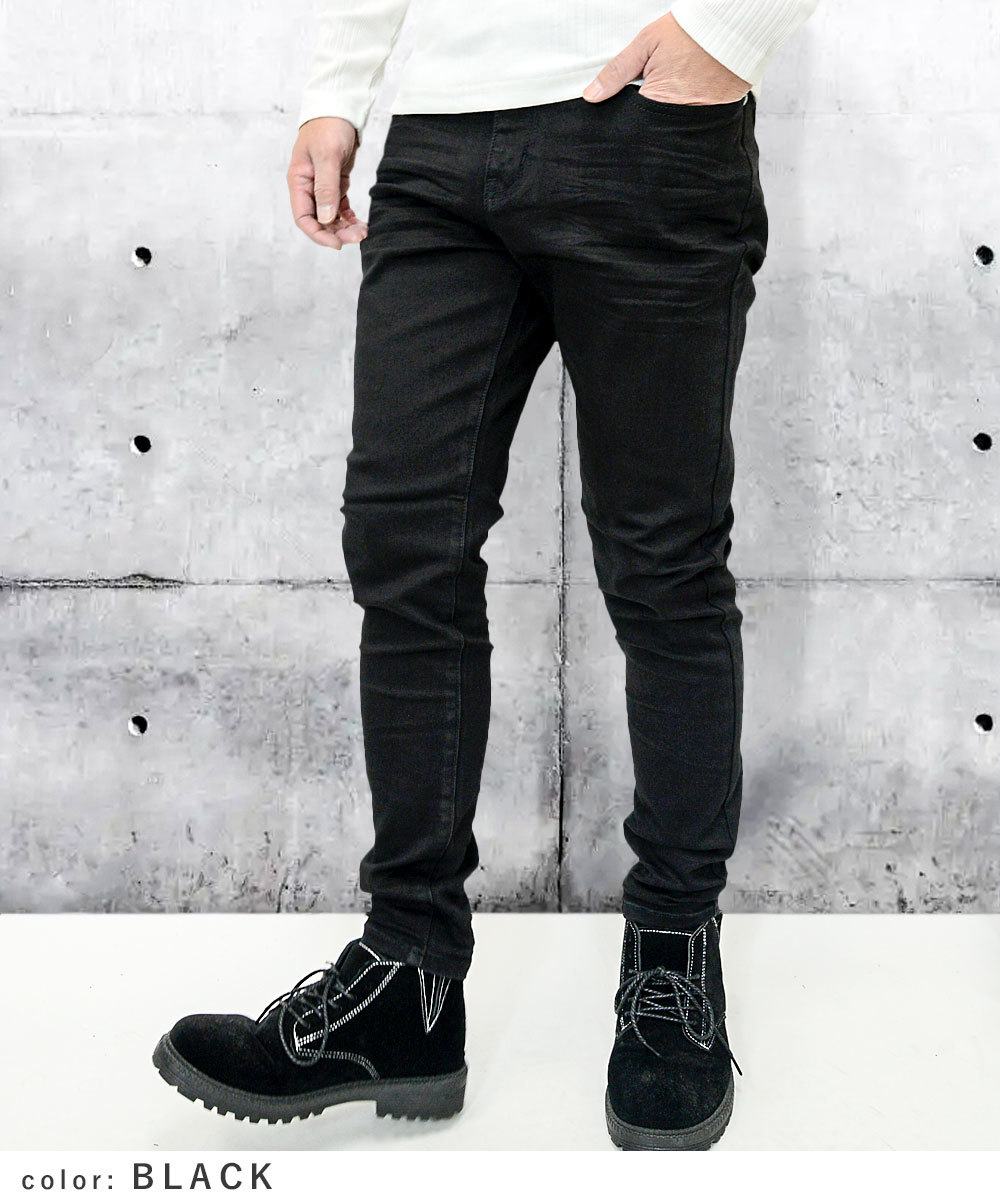 - ストレッチ機能 スリムデニムパンツ 88-t804 スキニーデニム 新品ブラックS