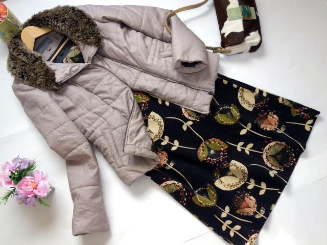 > ローラアシュレイ Laura Ashley ★軽く、暖かなエコファーコート★紫掛かった薄茶色★サイズUK8 EUR34 USA4(7~9号位)★ジャケット