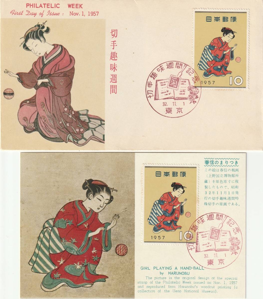 - FDCーMC 1957年 切手趣味週間 てまり JPCA