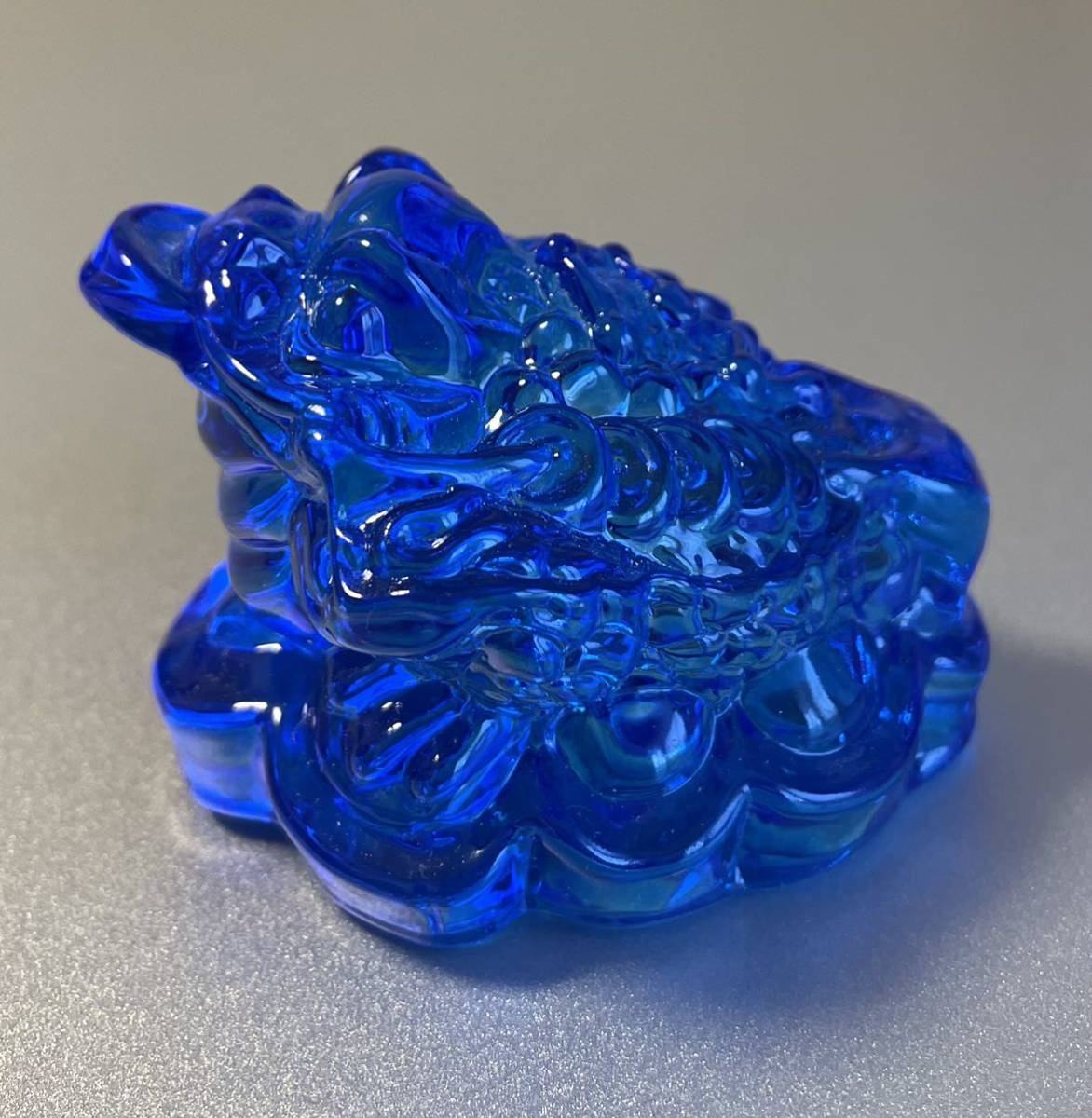 - 銭蛙 三本足蛙 金蟾 財を集めるカエル キンセン ヒキガエル ラッキー 幸運 財運UP 金運 パワーストーン 縁起物 置物インテリア ブルー