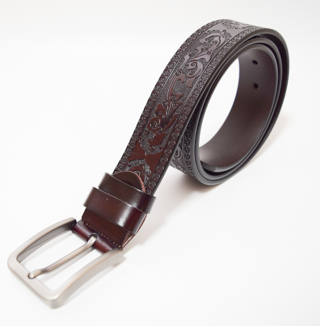 > ■匿名配送送料無料 本革/牛革 ベルト メンズ レディース対応 型押しエンボス 柄付き 唐草模様 茶 ブラウン