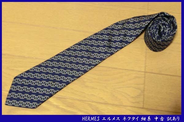 - ■HERMES エルメス ネクタイ 紺系 中古 訳あり