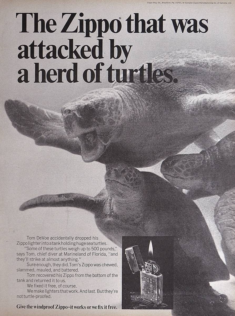 - 稀少!1967年Zippo広告/ジッポー/ライター/煙草/シガー/ウミガメ/A