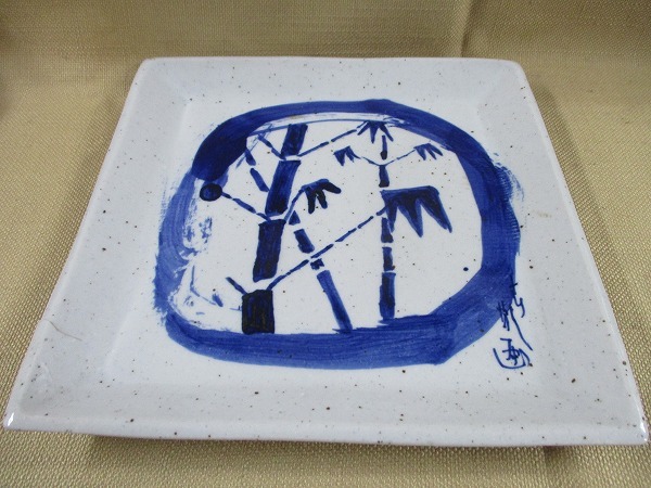 - ◆お皿 角皿 竹 24×24㎝ ※汚れ・窯キズあり tm2302-13-14