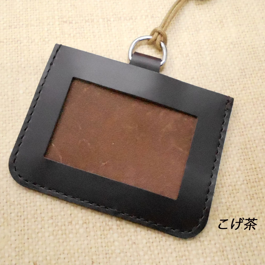 - 本革 パスケース 定期入れ /ごげ茶/ネックストラップ付 ID IC 社員証 カードホルダー レザー 学生 レディース メンズ