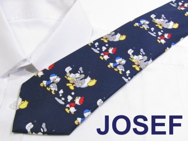 - C 603 ジョセフ ネクタイ JOSEF 紺色系 ドナルドダック 絵柄 プリント