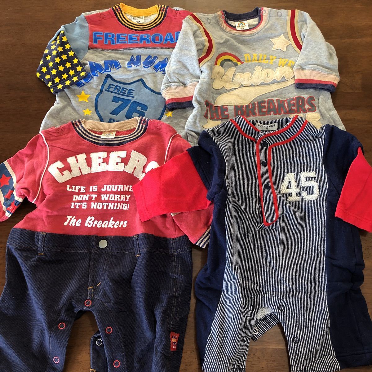 - カバーオール 男の子 ベビー服 4枚まとめて 70㎝ 中古 保育園着替え用