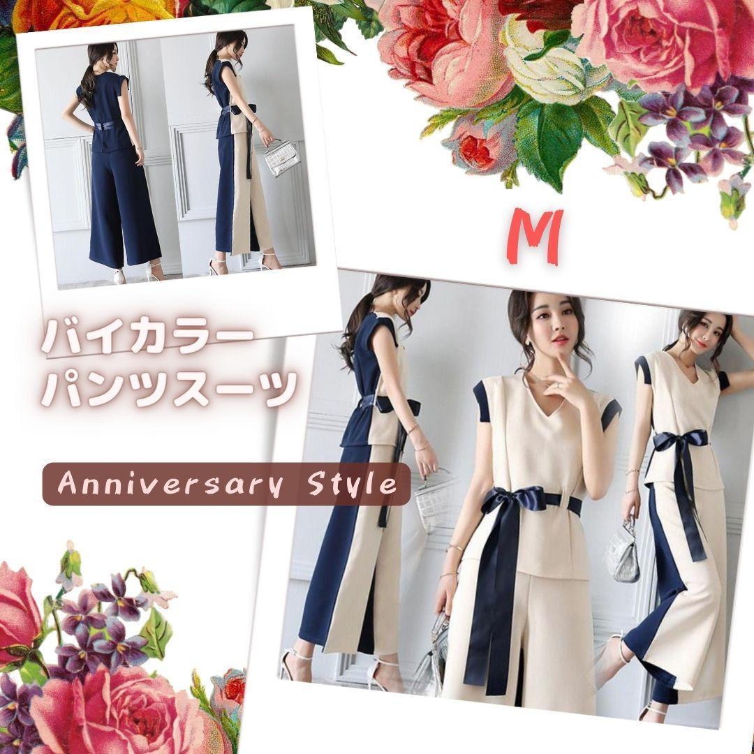 > パンツスーツ M 即納 ベージュ セットアップ 上下セット T0046 バイカラー レディース シャツ + ガウチョパンツ 2点セット OL