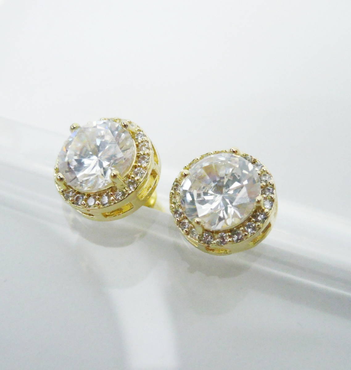 - ゴールド×クリアカラー CZ ピアス ペアピアス 新品 未使用 ジルコニア シンプル 両耳用 合金 スタッドピアス