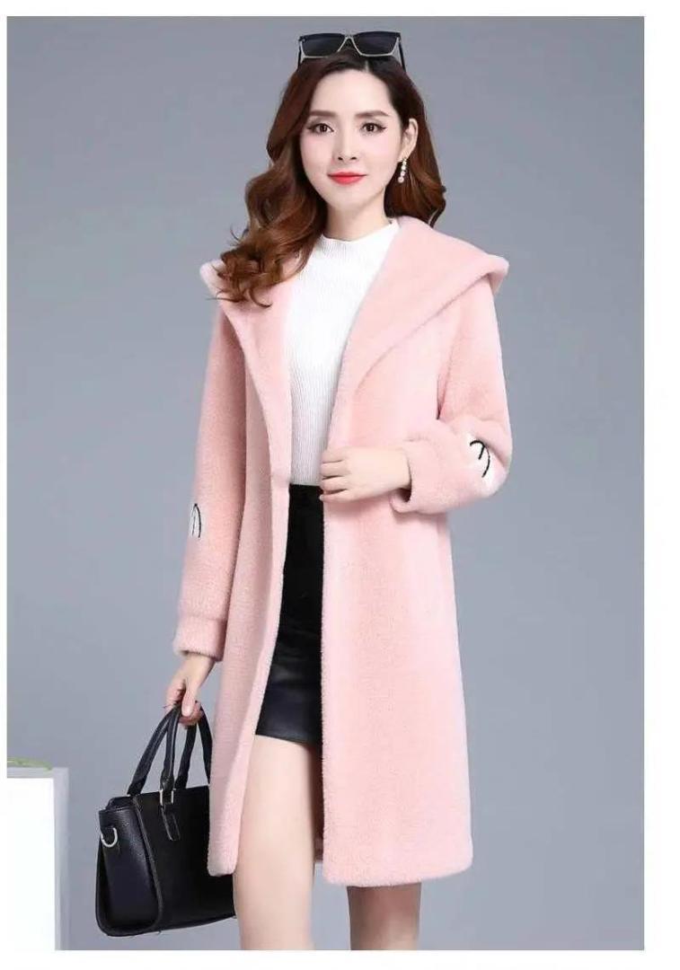 - 【ピンク★XL】ビッグカラー エコファー フリースミドルコート フード付き