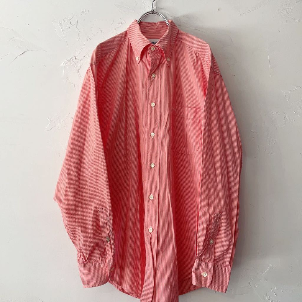 > ヴィンテージ コットン100% 長袖 ボタンダウンシャツ3 薄手 ピンク ホワイト ストライプシャツ サイズL ゆったりメンズ レディース古着