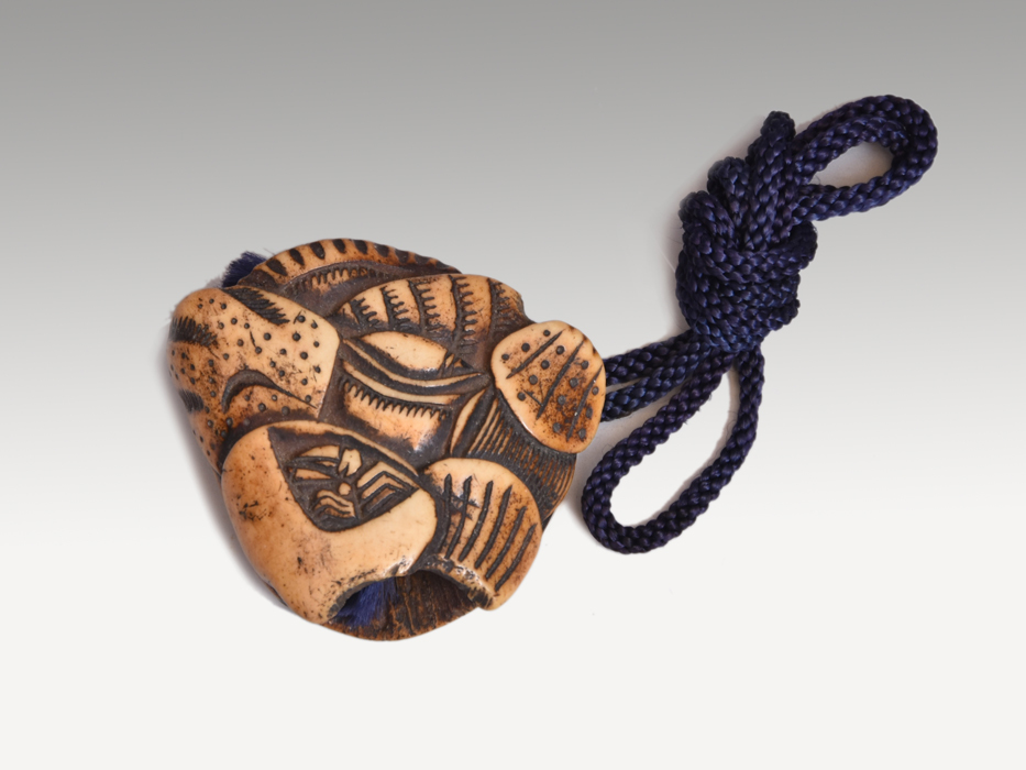 - 江戸時代 貝寄せ根付 重量29g 時代骨製か鹿角 y0847