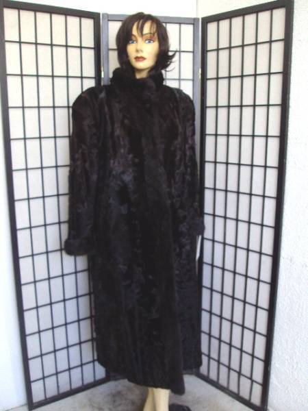 - ブラック&ブラウン ラム&ミンク毛皮コート サイズ10