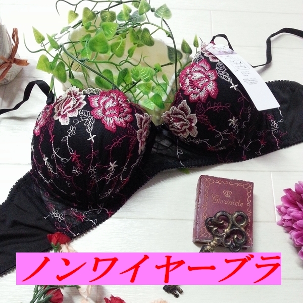 > A85☆ノンワイヤーブラ バストアップ 美胸 Wパッド モールドカップ らくらくきれいブラ レッド系 F544