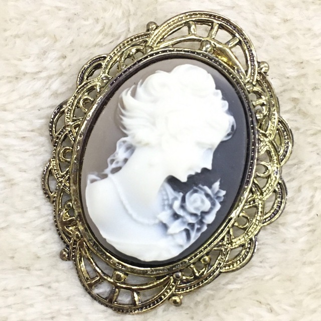 > カメオ アンティーク ビンテージ ブローチ 台座金具 ゴールドカラー レディース アクセサリー 女性モチーフ 3.5×4.5cm