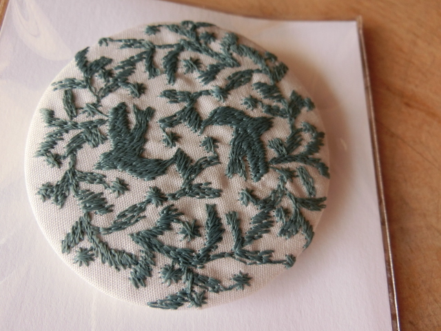 - ◆倉敷意匠計画室×点と線模様製作所 刺繍 缶バッジ ブローチ メッセージバード 鳥 bird 新品◆