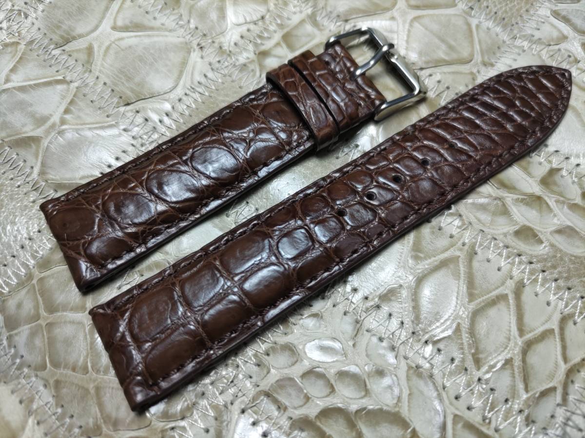 - 送料無料 本物クロコダイル 22mm ダークブラウン 上質ワニ革 腕時計用ベルト