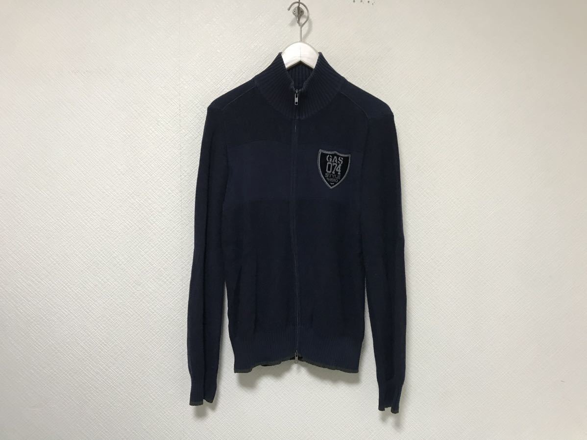 - 本物ガスGASコットンウールジップニット長袖セーターメンズビジネススーツミリタリーサーフ紺ネイビーSルーマニア製