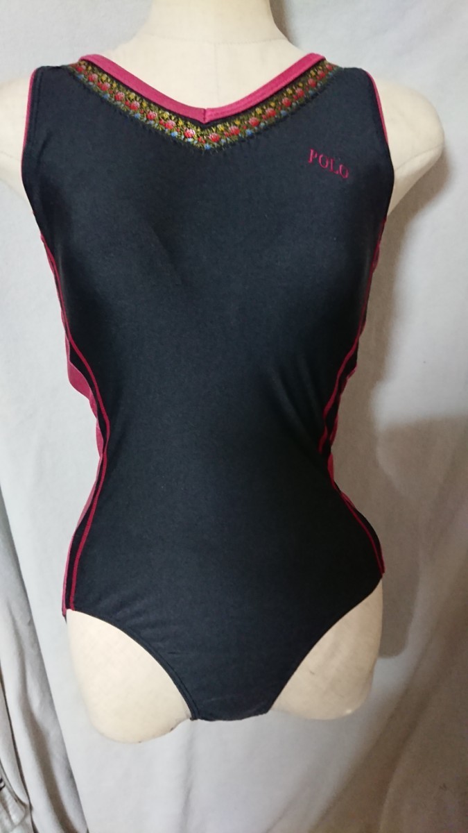 - M683◆POLO◆セレブなブラック×レッド系ワンピース水着◆9M