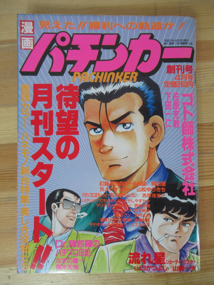 - D28△漫画 パチンカー 創刊号平成2年4月 ゴト師株式会社 佐原充敏 下田一仁 流れ星 山田かつよし Dr.陳邪羅のパチプロ日記 パチンコ 230314