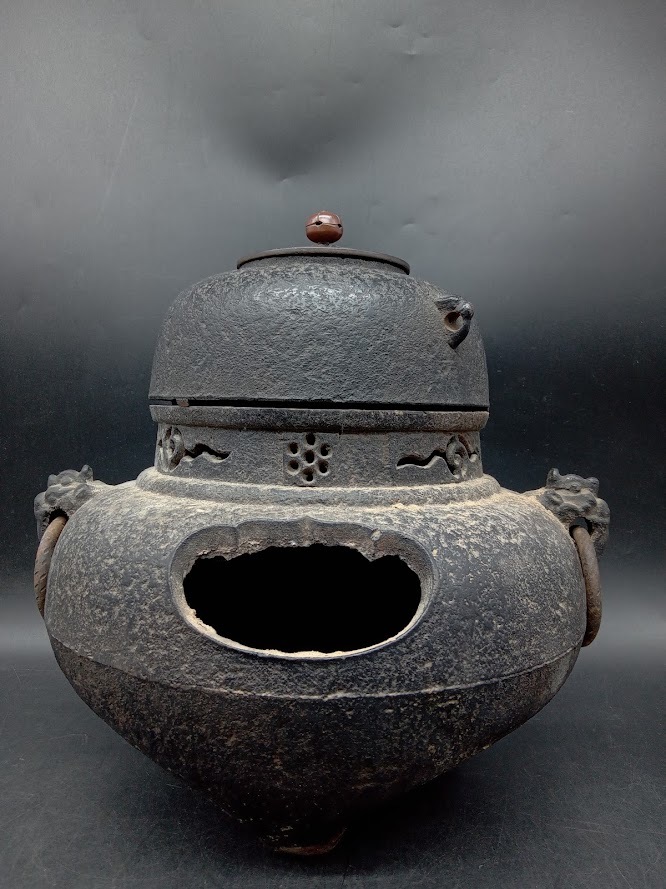 - ▽ 風炉釜 / 茶道具 茶釜 鉄製 灰入り インテリア コレクション 茶室 お茶 レトロ