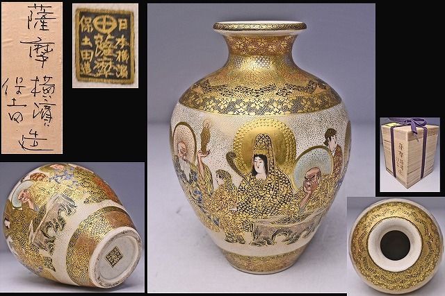 > 日本 横濱薩摩 保土田製 ★ 保土田太吉 ★ 色絵金彩 人物文 壺 ★ 木箱 ★ 鹿児島 沈壽官氏の所で成形 ★ 明治 海外輸出向の名品 横浜薩摩