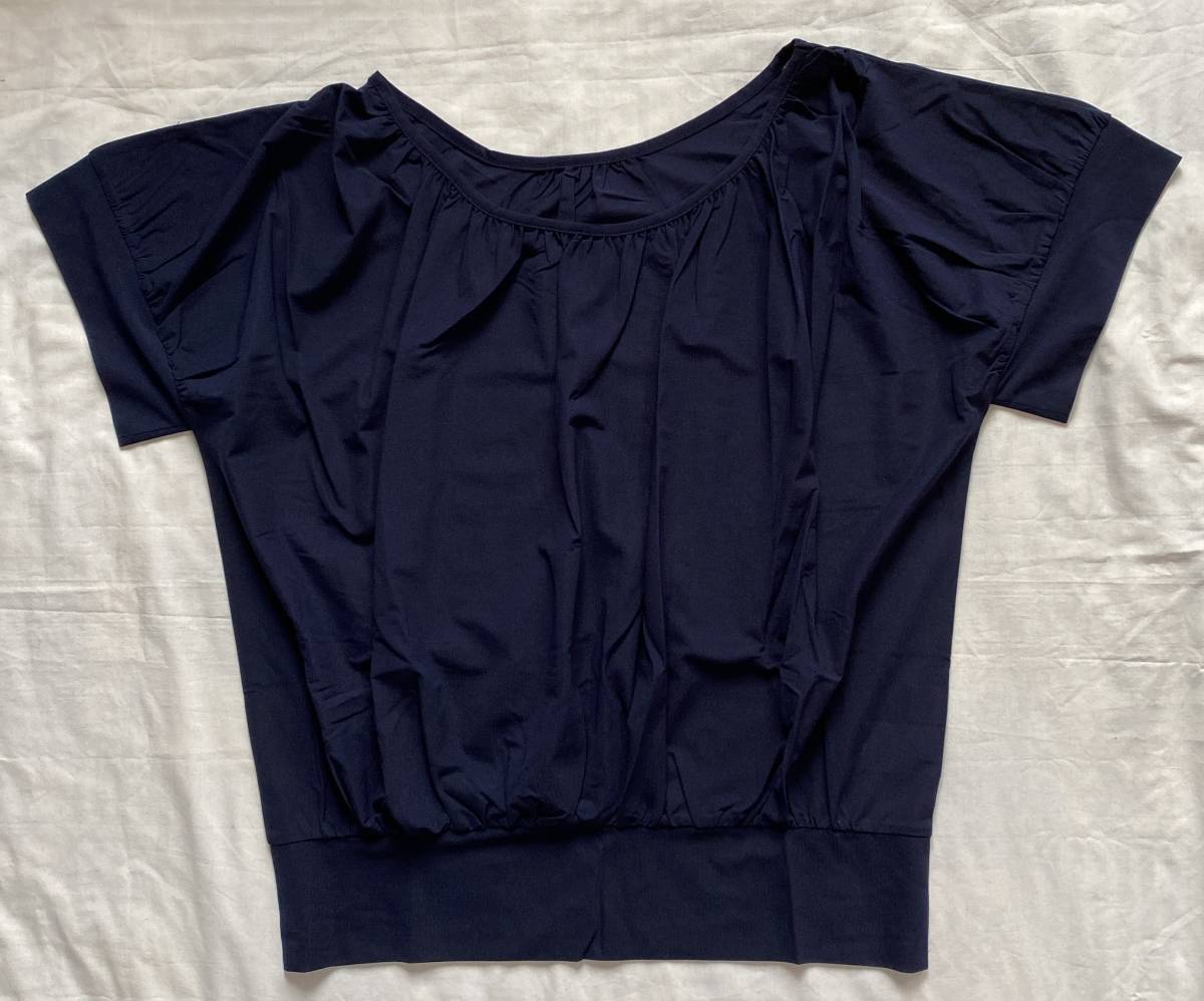 > ワイドネック半袖シャツ Mサイズ DAES千趣会 紺系色 通販商品 4.290円税込み品))))紙タグなし未使用品
