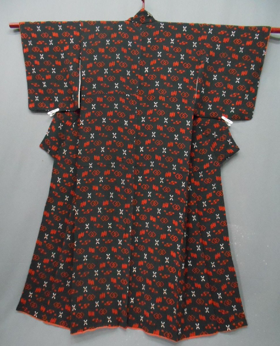 - お召 着物 [A21079] 身丈143cm 裄丈60cm 袖丈45cm 和服 衣装 リメイク 古着 リサイクル着物