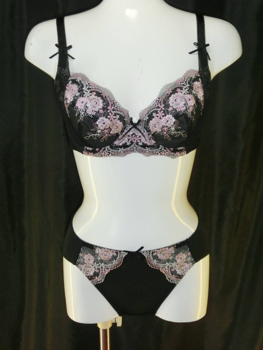 - ☆【G70 M】ブラック 透け感のあるリフトブラジャー・ショーツセット《4-2》