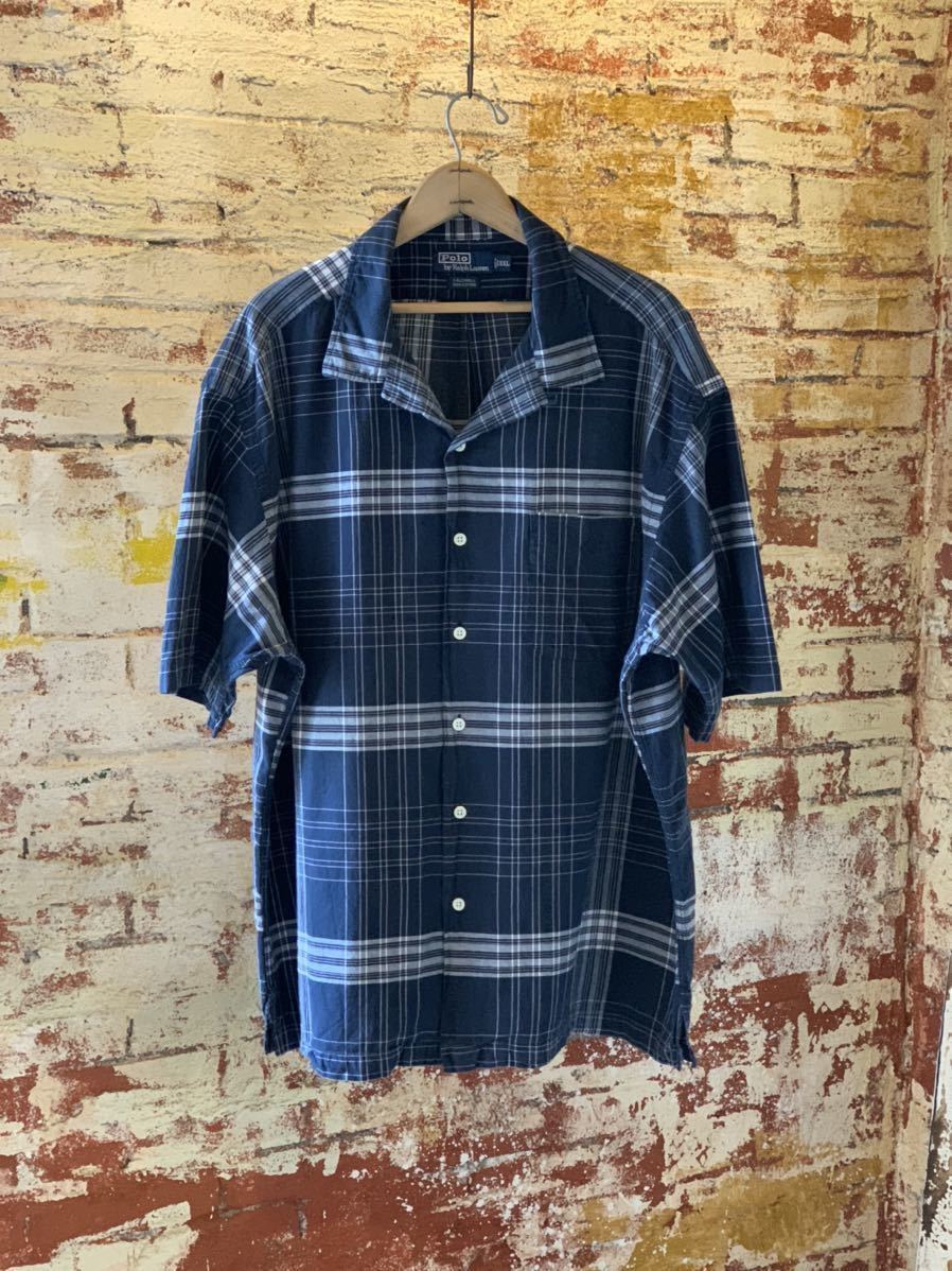 > 90s Ralph Lauren PLAID OPEN COLLAR SHIRT CALDWELL ラルフローレン チェックシャツ オープンカラーシャツ 開襟シャツ 80s XXL 送料無料