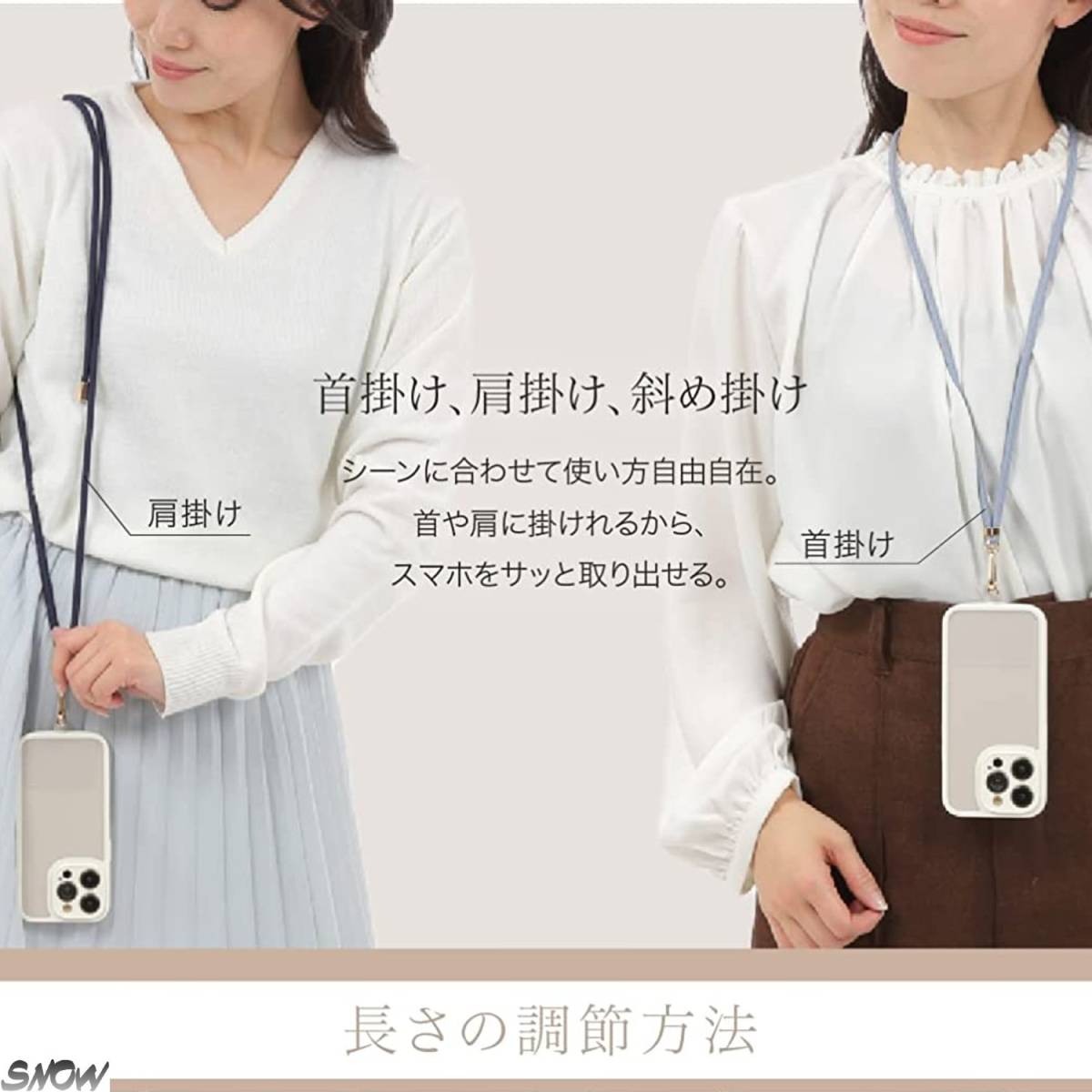 - おしゃれ グレイッシュベージュ ゴールド金具 首掛け 肩掛け 斜めがけ 落下防止 ホルダー ネック ショルダー ストラップ スマホ ケータイ