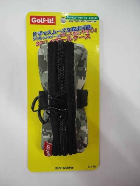 - ■ティーホルダー付き ボールケース 3個入用 【デジタルピクセル】C-179『カラビナ付き』