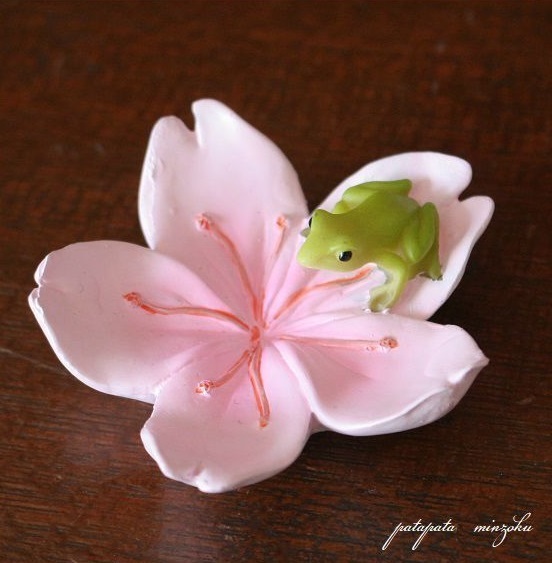 - 桜 の 花びらに乗る カエル 置物 オブジェ さくら サクラ ディスプレイ 雑貨