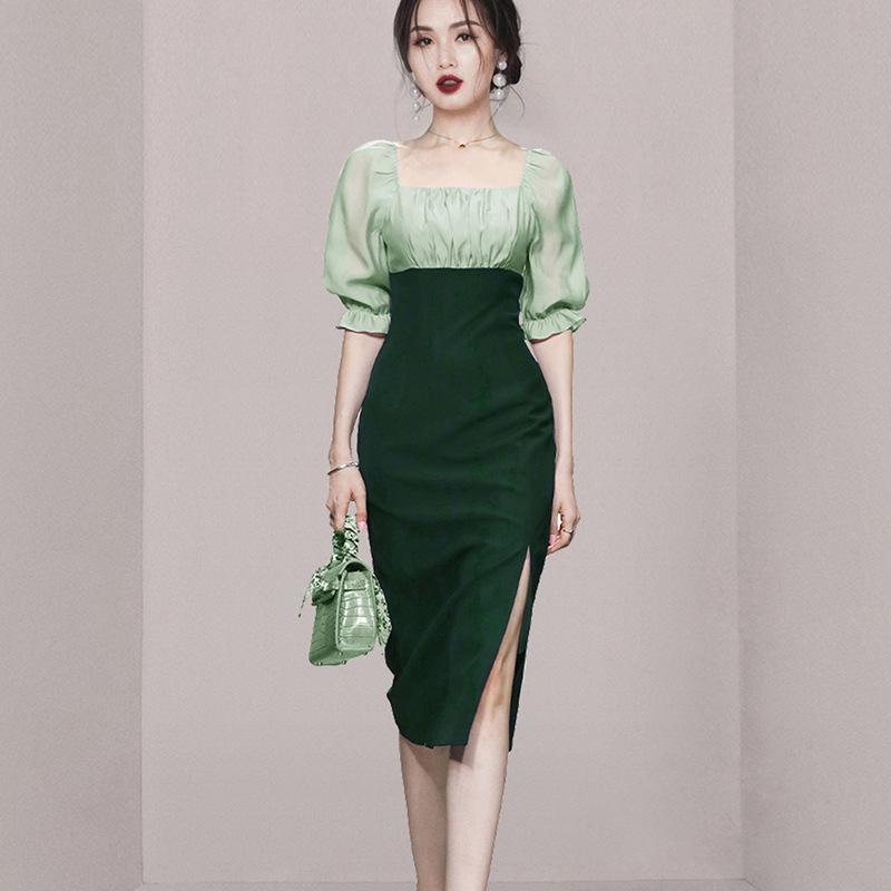 - 【グリーン★Lサイズ】レディースひざ丈ワンピース