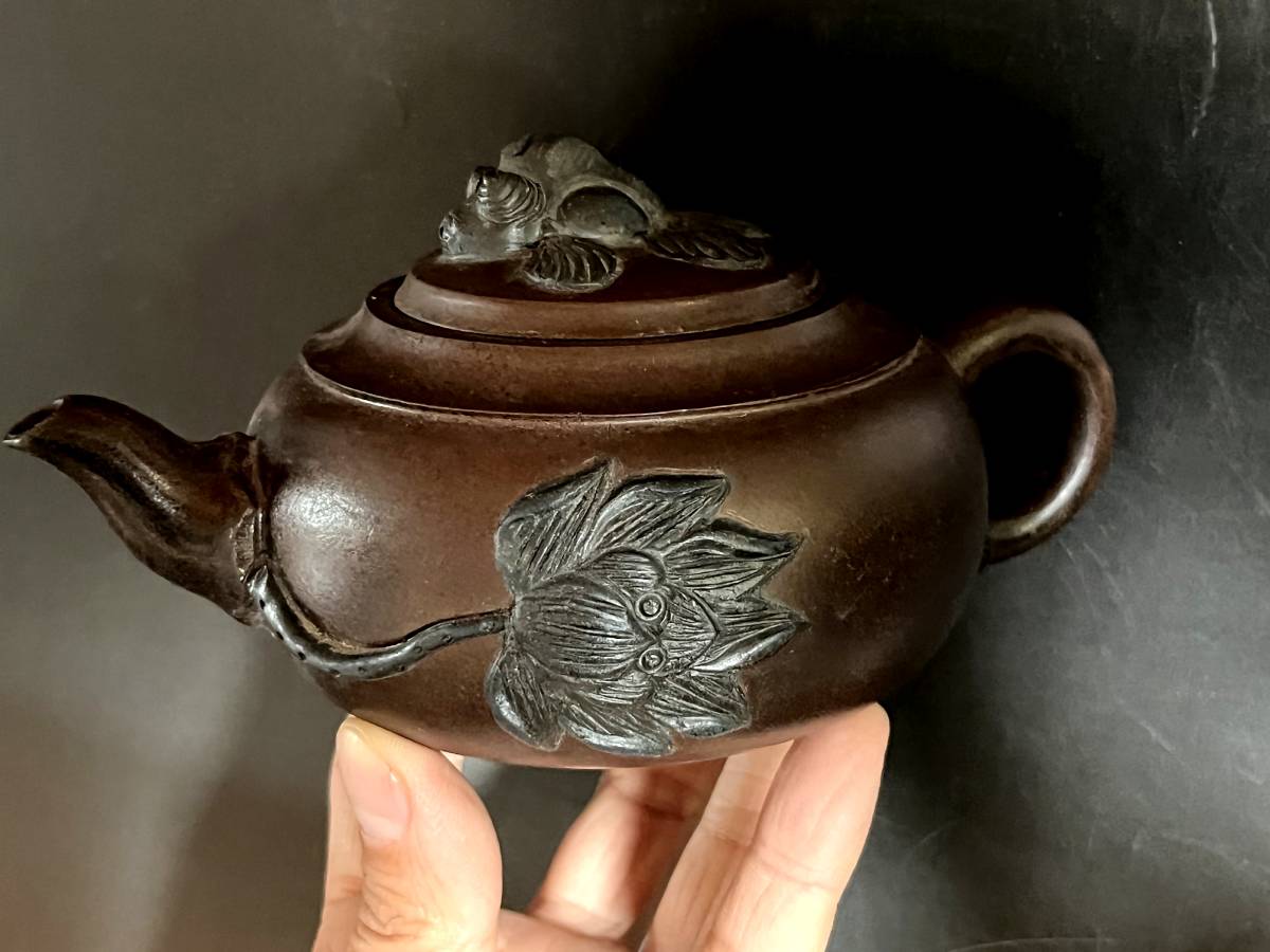 - 急須■金魚刻摘み 誰維錐栄筒制? 紫泥 後手 紫砂 朱泥 古玩 唐物 中国 古美術 時代物 骨董品■