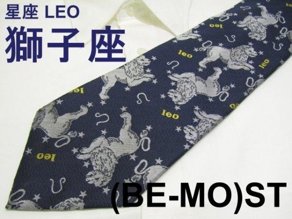 - D 140 獅子座 星座 LEO (BE-MO)ST FELLSSIMO ネクタイ 紺色系 獅子座刺繍模様 ジャガード