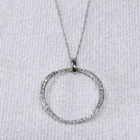 > 【値下交渉は質問欄より】柔らかな輪のモチーフトップ☆ダイヤ0,57CTキラキラのK18WG製ペンダント☆上品なロングネックレス☆