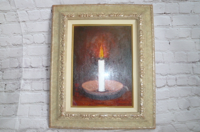 > お宝! 真作保証 油彩 高島野十郎 作 【蝋燭】高級額縁 肉筆保証 真筆 裏書あり 大正~鑑定団15000000円以上 ろうそく生まれ故郷久留米入手